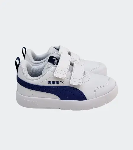 ¿Tu peque no para ni un segundo? La Deportiva Courtflex Blanco Azul de Puma le acompañan en cada paso. Flexibles, cómodas y resistentes al juego y al cole.