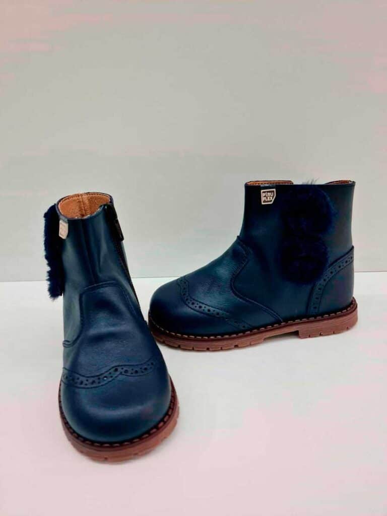 Botín de niña de la marca Mayoral en color marino. Con apliques en el lateral en forma de flor. Cuenta con dos velcros para una mayor sujeción del piel. Fabricada en piel tanto en el interior como exterior. Además cuenta con una suela antideslizante y muy flexible