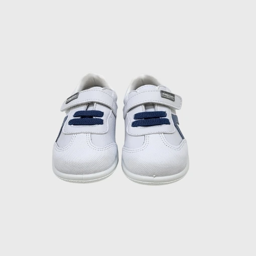 La horma anatómica y amplia en la zona de los dedos permite una colocación natural del pie, evitando presiones innecesarias durante el crecimiento. La suela fina y flexible acompaña la pisada y favorece el equilibrio y la estabilidad al caminar y jugar.