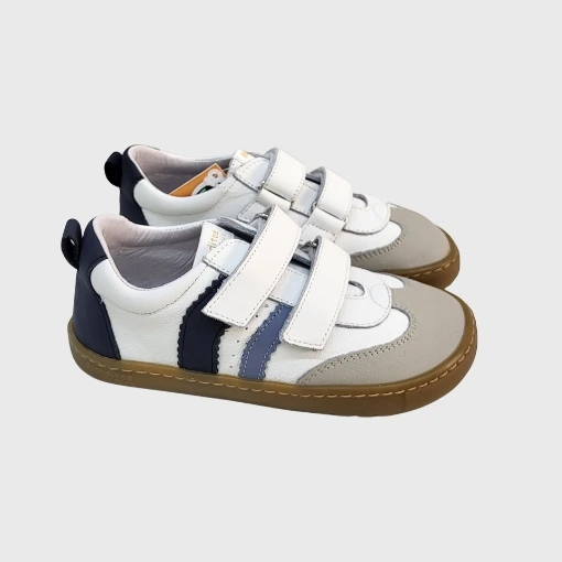 La Deportiva Delfin Azul Blanditos es una deportiva barefoot diseñada para niños que necesitan comodidad, libertad de movimiento y un plus de confianza en su calzado diario. Un modelo pensado para el colegio, el parque y el uso cotidiano, que además encaja muy bien en looks más formales pero desenfadados.