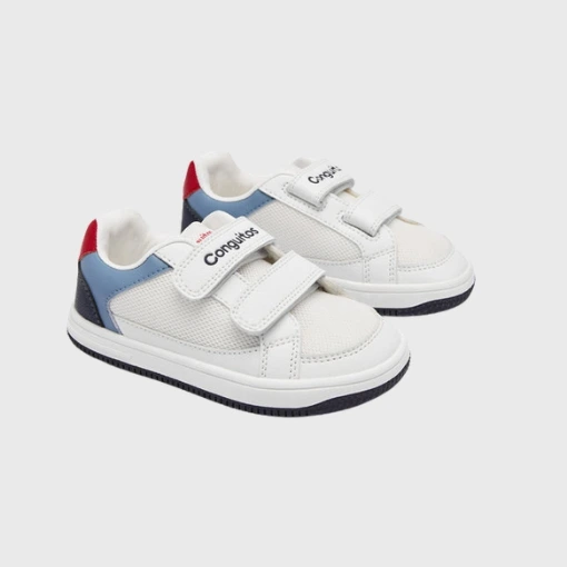 La Deportiva Goflex Blanca Azul Conguitos es una zapatilla barefoot para niño diseñada para ofrecer libertad de movimiento, comodidad y un estilo limpio que encaja tanto en el parque como en looks más arreglados. Un modelo pensado para acompañar el crecimiento natural del pie sin rigideces.