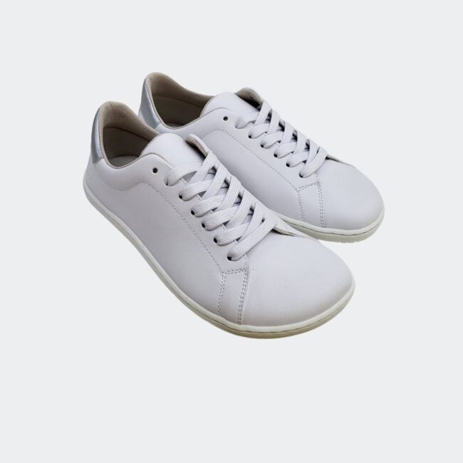 La Deportiva Respetuosa Coqueflex para adulto está pensada para quienes pasan muchas horas de pie y no renuncian al estilo. Si buscas calzado barefoot para el día a día —ligero, versátil y duradero— este modelo combina una estética limpia en blanco con talonera plata y toda la ergonomía del calzado respetuoso.