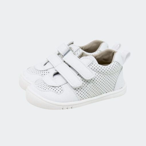 Las Deportivas Respetuosas Perforadas PF351 Blanco Pirufin son ligeras, transpirables y veganas. Con suela flexible y cierre de velcro, ofrecen confort y autonomía para los más pequeños. Perfectas para el uso diario, combinan estilo en blanco completo con la seguridad que los pies en crecimiento necesitan. ¡Cómpralas ahora!