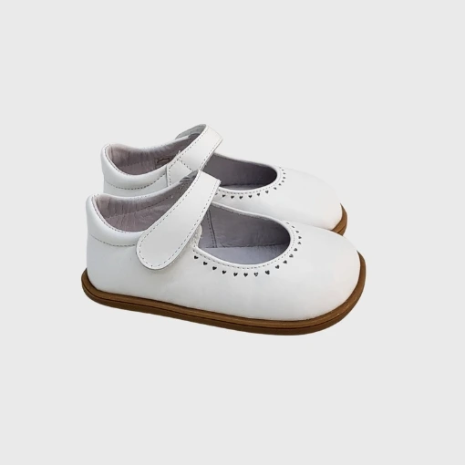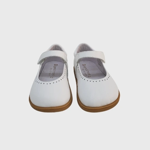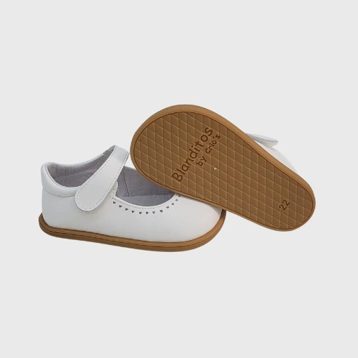 La Mercedita Delhi Blanco Blanditos es un zapato respetuoso pensado para acompañar a las niñas en su día a día sin interferir en el desarrollo natural de sus pies. Un modelo cómodo, flexible y ligero, con un diseño blanco sencillo que funciona igual de bien para el uso diario que para ocasiones especiales como ceremonias o celebraciones.