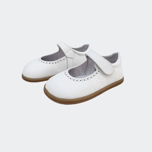 Las Merceditas Calma Blanco Blanditos están diseñadas en piel transpirable con cierre de velcro, suela flexible y horma ancha, asegurando confort y libertad en cada paso. Ideales para el día a día o eventos especiales, son perfectas para pies en crecimiento.