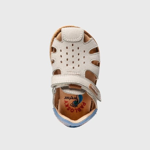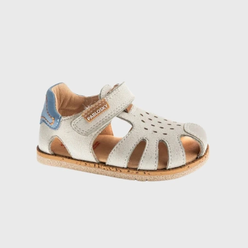 La Sandalia Barefoot 074206 Beige Pablosky combina tonos neutros con un toque azul suave, creando un modelo natural, combinable y muy fácil de llevar a diario.