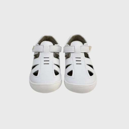Una auténtica sandalia barefoot blanca niño niña, pensada para adaptarse a cualquier conjunto sin perder su esencia barefoot.