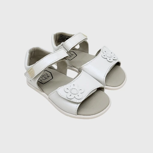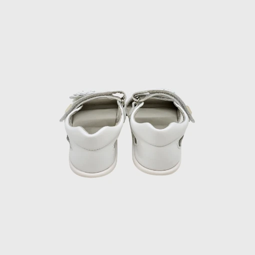 El acabado en blanco con detalle floral aporta un toque dulce y atemporal. Es una sandalia que funciona tanto para el parque como para ocasiones un poco más especiales. No resulta recargada, simplemente acompaña.
