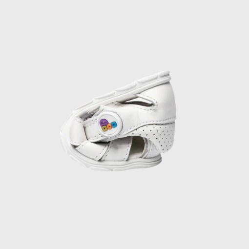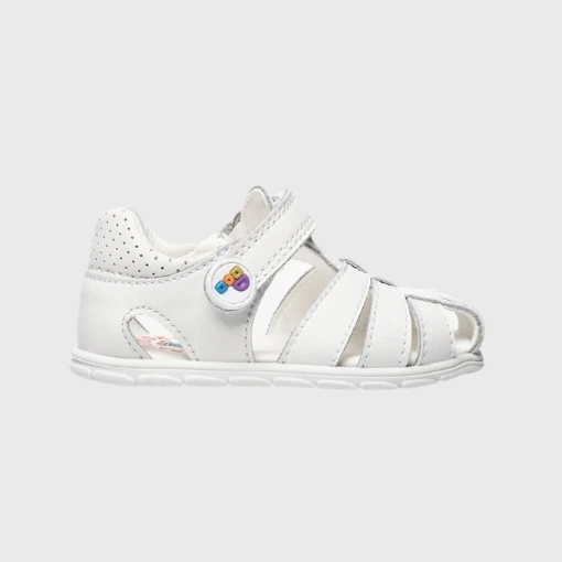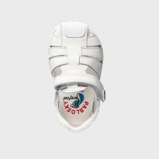 La Sandalia Respetuosa 067800 Blanca Pablosky es un modelo tipo cangrejera, más cerrado y protector, pensado para niños activos que necesitan libertad, pero también seguridad en su día a día.