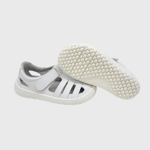 Sandalia barefoot blanca ligera y flexible.